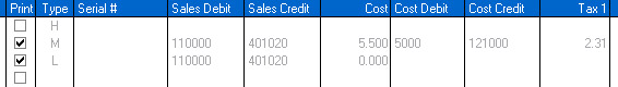 In addition, if you are currently logged in as the ADMIN user, there is additional behind-the-scenes information that can be seen by scrolling all the way down on the invoice, and then over to the right. This will show the detailed information behind each line item, including the breakdown of tax authorities, cost amount per item, GL accounts affected, and more, as shown below:
